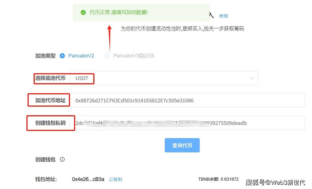 - 创建钱包私钥:填入加池操作钱包的私钥